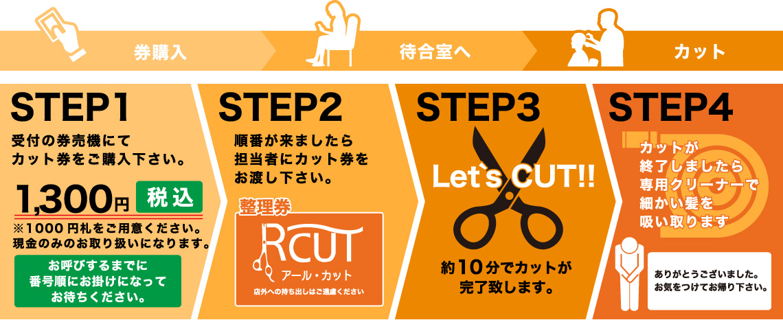 お客様のご来店の順番にカットさせていただきます。
