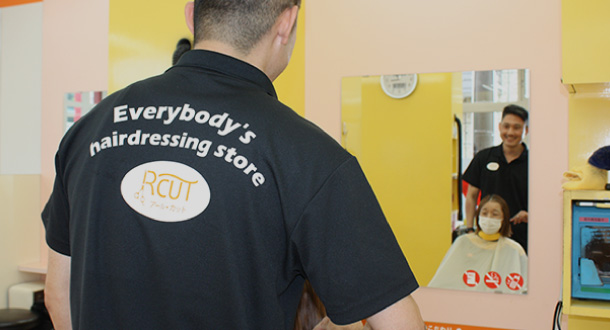 - ■まずは笑顔でお客様をお迎え、お席までご案内します。(お客様は券売機でカット券を購入されるので現金を扱うレジ作業はありません)